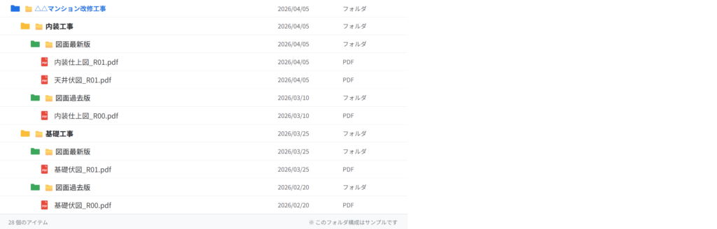 - 図面・書類の保存場所の統一:「最新版はここにある」という場所を1か所に決める