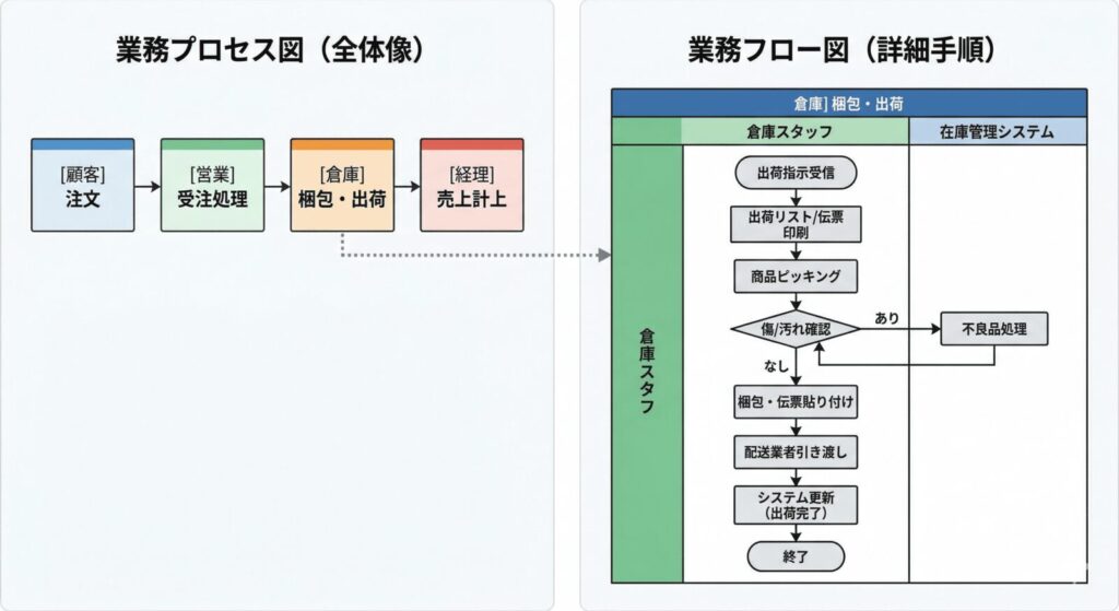 「業務フロー図」と「業務プロセス図」の違い