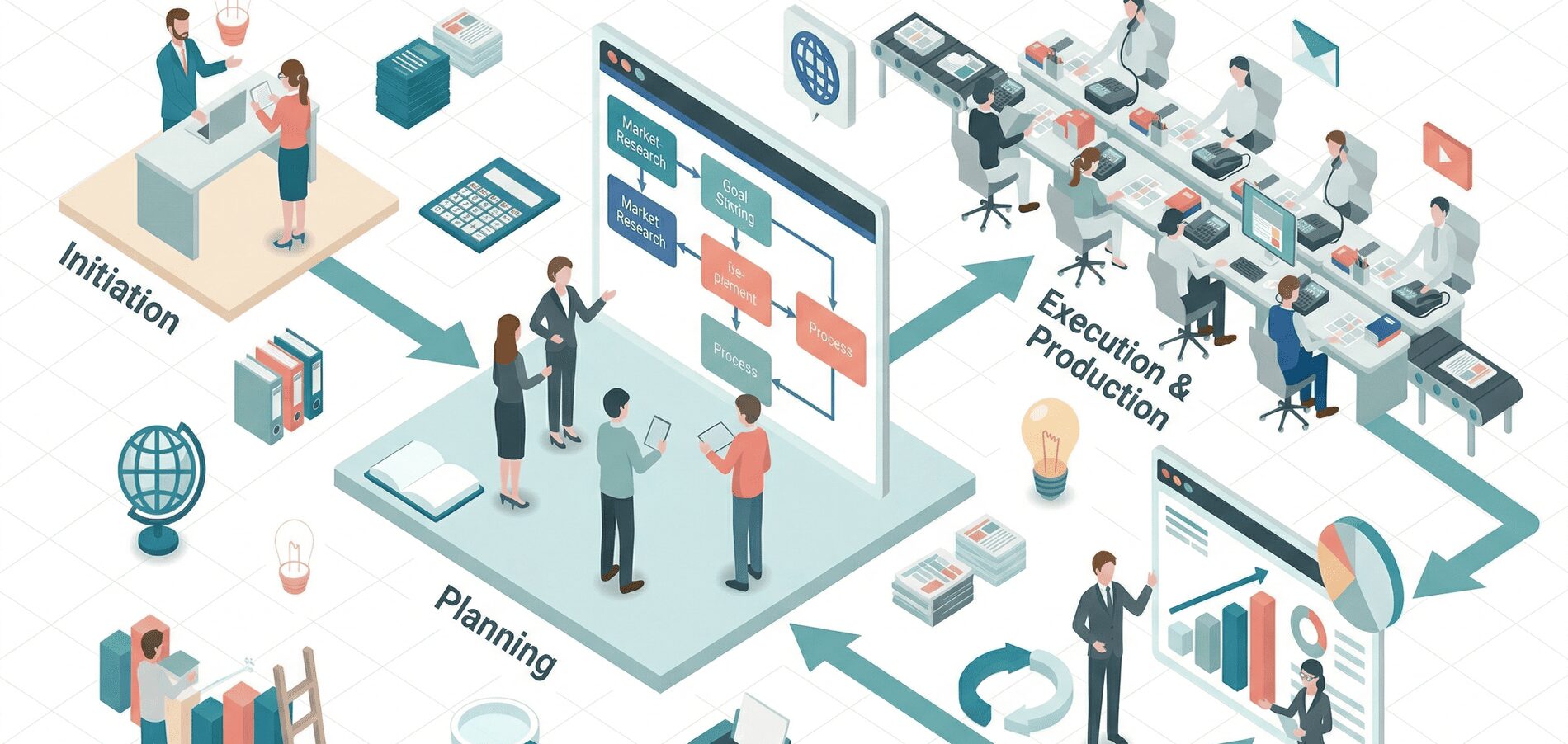 業務フロー図とは、業務の手順・担当者・条件分岐を図形と矢印で可視化した図のことです。業務マニュアルや作業標準化の土台として、非常に重要な役割を果たします。