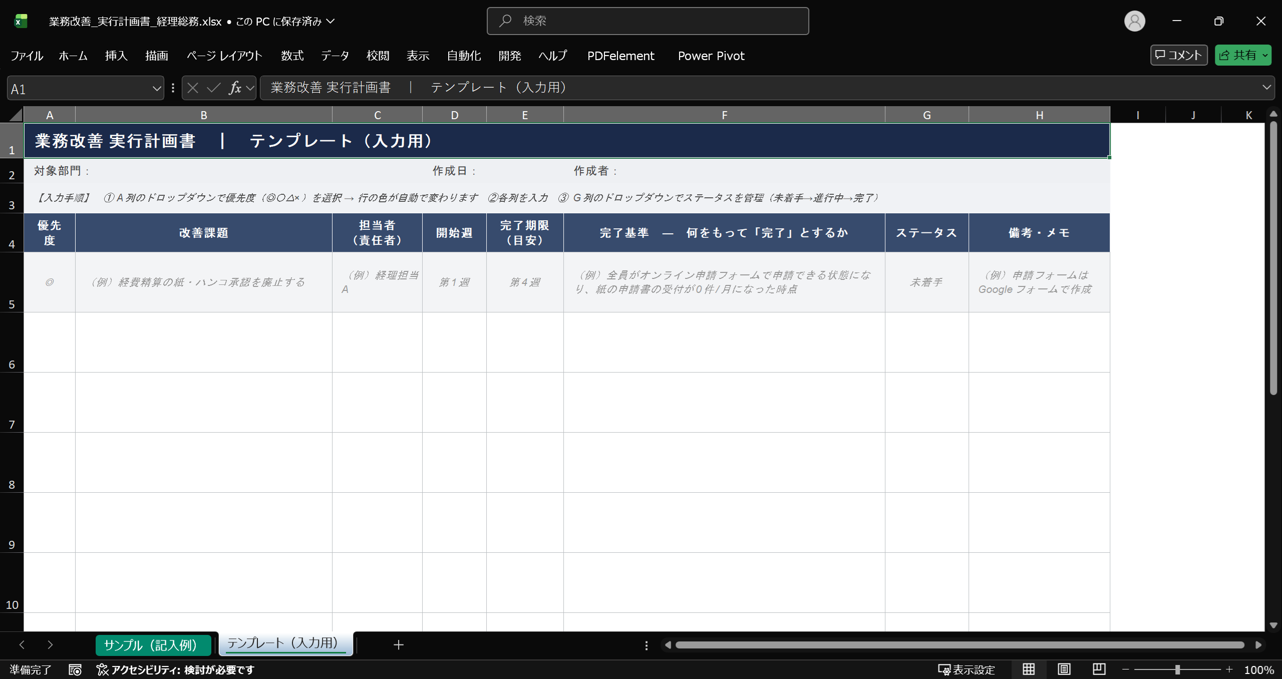 - [ ] 改善した業務手順を文書化(マニュアル化)した